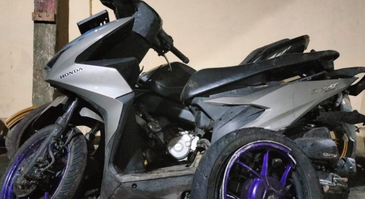 Selanjutnya, barang bukti yang berhasil disita dalam perkara tersebut diantaranya milik tersangka berupa sepeda motor Honda Beat warna Abu-Abu tanpa plat yang dalam keadaan rusak milik dan celana levis pendek warna hitam.