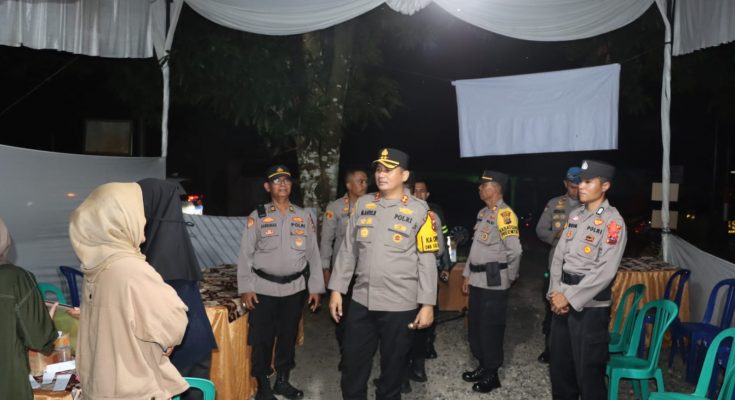 Kapolres Agam AKBP Muhammad Agus Hidayat, S.H., S.I.K bersama PJU dan personil datangi beberapa TPS pada malam hari menjelang pemungutan suara pemilu 2024 dimulai. Selasa (13/2).
