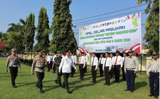 Demi memberikan rasa aman dan nyaman bagi masyarakat, Pemerintah Kabupaten Way Kanan bersama dengan TNI, Polri melaksanakan kegiatan apel gelar pasukan Operasi Ketupat Krakatau 2024 yang berlangsung di halaman apel Mako Polres Way Kanan. Rabu (03/04/2024).
