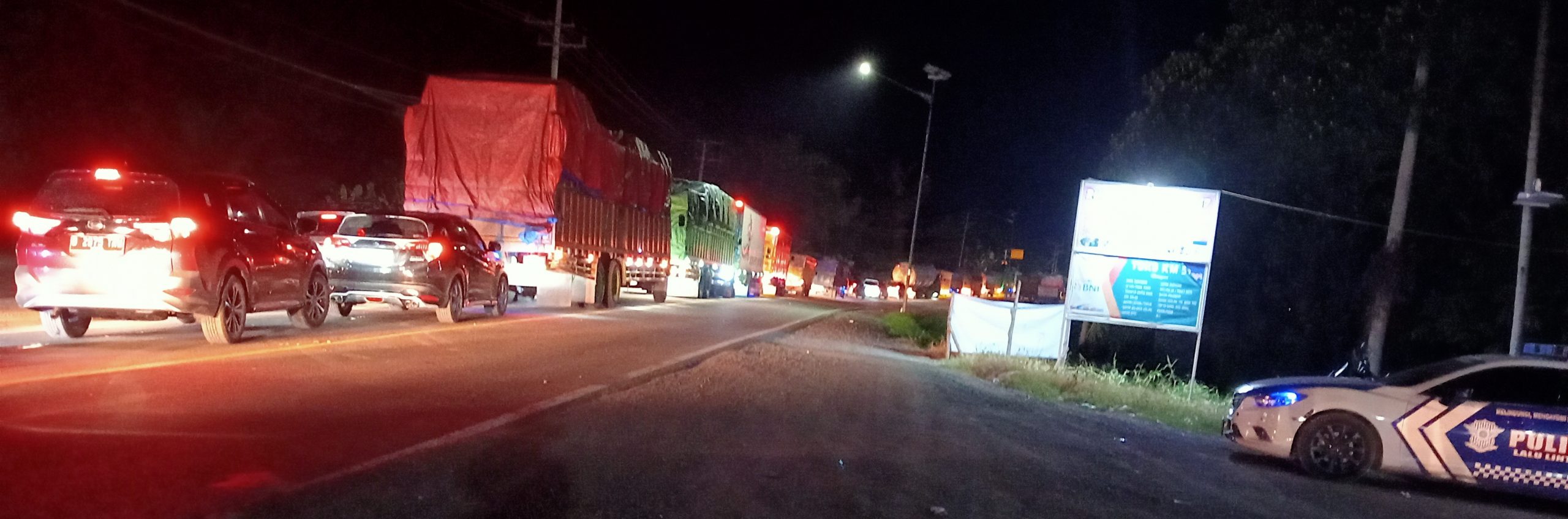 Terpantau petugas Kepolisian dari Polres Banyuasin Polda Sumsel ditempatkan di titik-titik lokasi penyebab macet. Namun arus kendaraan yang sudah lancar yang dari arah Betung tujuan Palembang dan arus kendaraan dari arah Palembang ke Betung masih macet dan hanya bergerak satu putaran roda sudah berhenti lagi.