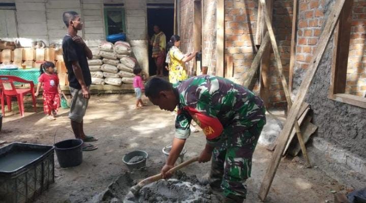 Sebagai wujud kebersamaan dan meningkatkan kerjasama di wilayah binaan, Babinsa Serma Suhardi melaksanakan kerja bakti membantu warga membangun rumah Bapak Suntoro selaku tokoh agama dikampung binaannya.