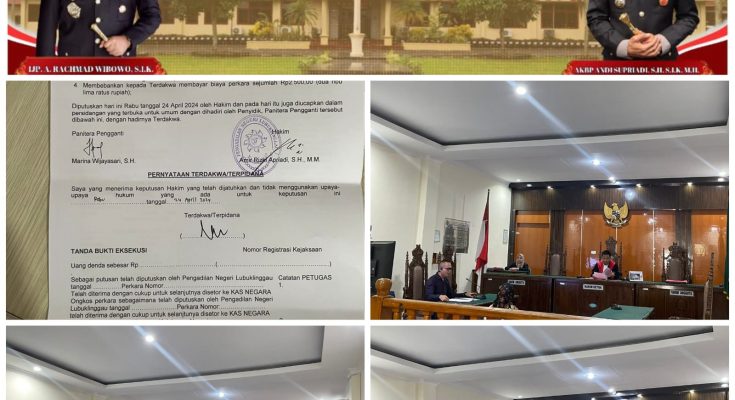 Yang kemudian digelar Sidang Tipiring pun terdaftar dan dilaksanakan pada hari yang sama, dipimpin oleh Hakim Ketua Verdian Amir Rizki Apriadi, S.H, M.M.
