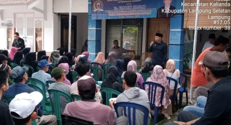 MNN com, Lampung Selatan – Anggota DPRD Lampung Selatan, Halim Nasai menyapa konstituennya dalam bentuk kegiatan Sosialisasi Perda (Sosper).
