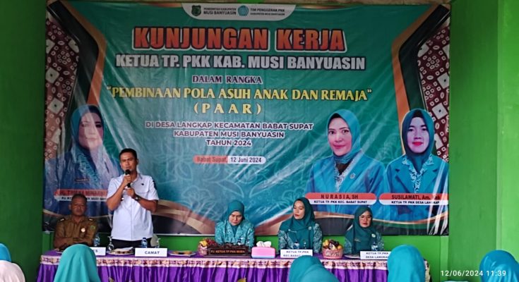 Muba,medianusantranews.com-Guna mewujudkan generasi muda yang berkualitas, Pemerintah Kabupaten Musi Banyuasin (Muba) melalui TP PKK Kabupaten Muba menggelar Pembinaan Pola Asuh anak dan Remaja di Desa Langkap Kecamatan Babat Supat, Rabu (12/6/2024).