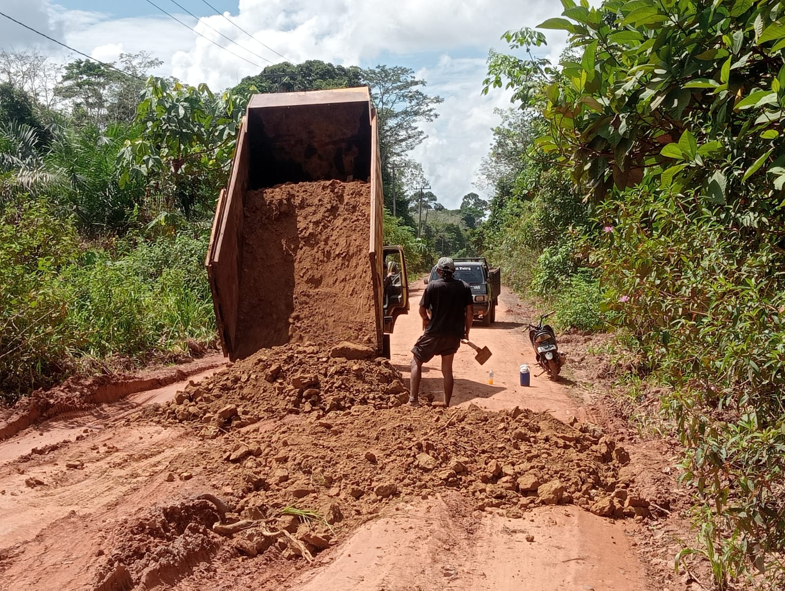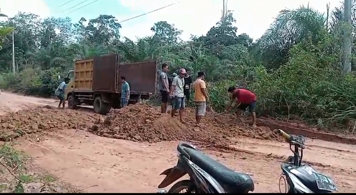 Banyuasin,medianusantaranews.com- Selain memudahkan transportasi untuk angkutan kendaraan sendiri, Al-fatihah warga Simpang Trans Dusun 6 Desa Keluang Kecamatan Tungkal Ilir Kabupaten Banyuasin Provinsi Sumatera Selatan melakukan perbaikan ruas jalan kabupaten dengan menggunakan dana pribadinya untuk menyelamatkan hasil produksi perkebunan milik masyarakat.