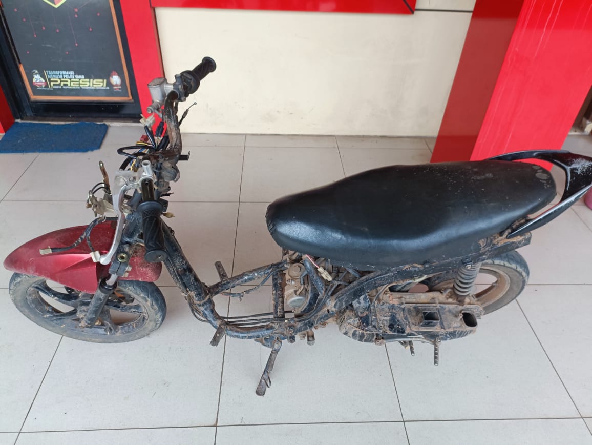 Adapun barang bukti yang diamankan berupa 1 unit sepeda motor mio soul tanpa body, 1 bilah senjata tajam jenis pisau, 1 buah baju milik korban dan 1 buah celana milik korban.