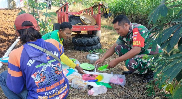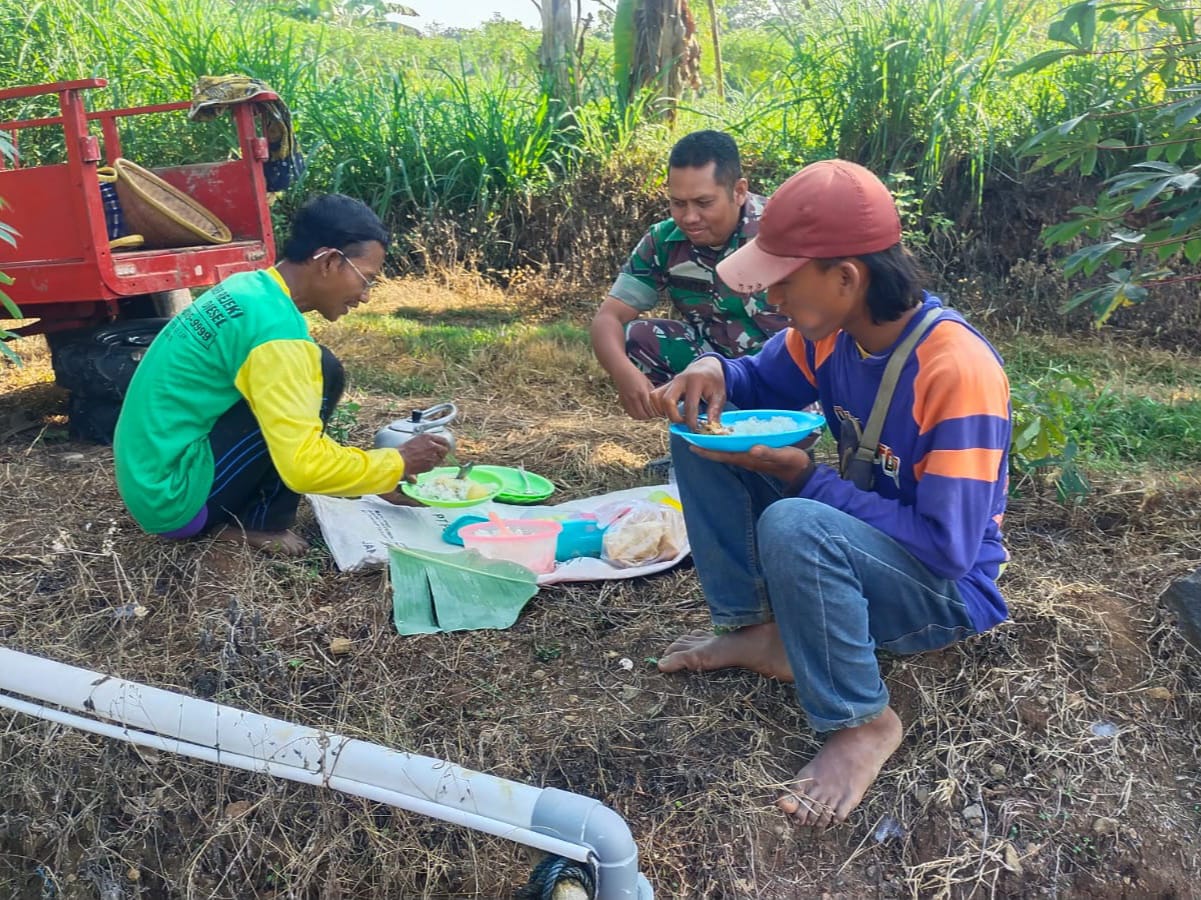 Kegiatan Babinsa dilakukan dengan cara makan bersama dengan Pak Ahmadi (Petani Padi ) di sawah, hal ini bertujuan untuk lebih mendekatkan diri dengan para petani di wilayahnya dan juga dalam rangkamenjalin silaturahmi yang erat antar keduanya sehingga dapat menyaring semua keluh kesah para petani dan berupaya mencari solusi dalam pemecahannya.