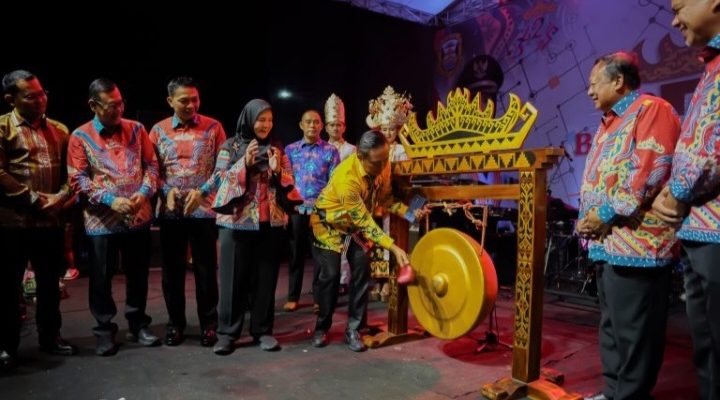 Walikota Bandar Lampung Hj.Eva Dwiana didampingi jajaran Forkopimda membuka Begawi dan Bandar Lampung Expo 2024 dalam rangka HUT ke-342 Kota Bandar lampung di Lapangan Saburai , Senin malam (8.7.2024.)
