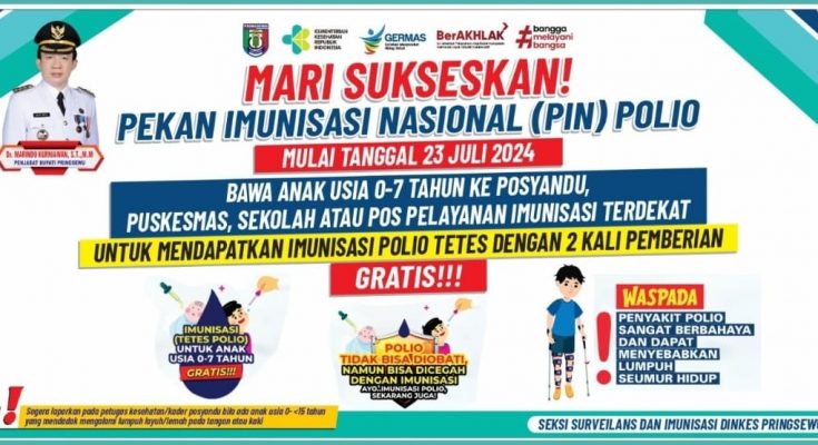 Dinas Kesehatan Kabupaten Pringsewu Mempersiapkan pelaksanaan Pekan Imunisasi Nasional (PIN) Polio tahap 1 yang digelar secara serentak di seluruh Puskesmas, Posyandu dan Poskesdes se Kabupaten Pringsewu yang dimulai pada tanggal 23 Juli 2024.