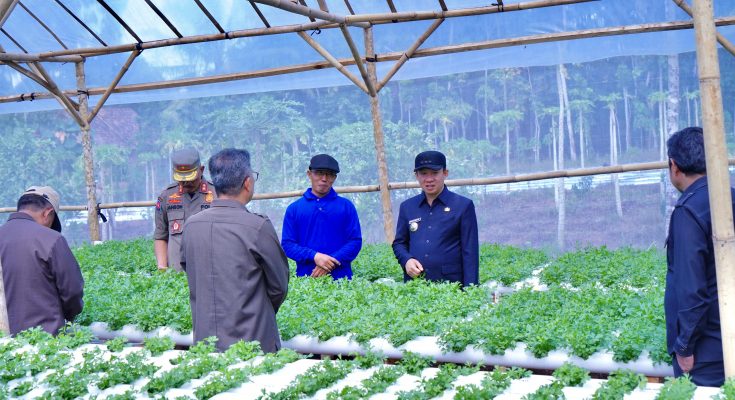 Pj Bupati Pringsewu Marindo Kurniawan meninjau budi daya pertanian hydroponic di Pekon Margosari, Kecamatan Pagelaran Utara, Rabu (24/7/2024).