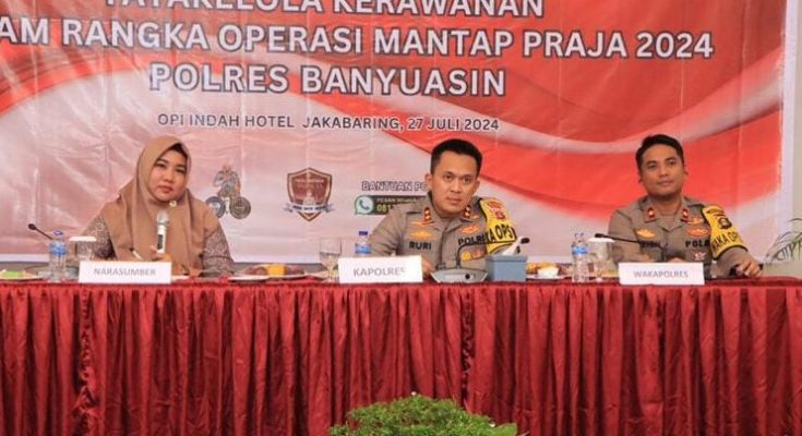 “Terlebih jelang Pilkada 2024, Polri dituntut untuk menjaga ketertiban serta memastikan kelancaran dari seluruh proses dalam pelaksanaan Pilkada yang akan datang,” ujar Kapolres Banyuasin AKBP Ruri Prastowo pada acara tersebut.