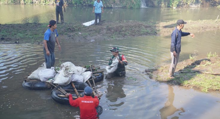 Babinsa Teras Turut Serta Bersihkan Sampah Sungai
