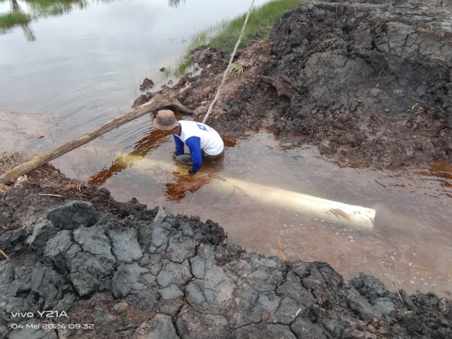 Banyuasin,medianusantranews.com- Untuk memcegah banjir saat datang air laut pasang dan musim hujan, Pemdes Pulau Muning Kecamatan Sembawa Kabupaten Banyuasin Provinsi Sumatera Selatan melalui sumber dana dari Dana Desa tahun 2024 membangun saluran irigasi.