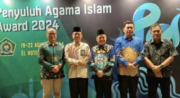 Drs. Kusuma Riyadi, M.M. didampingi Kepala Kantor Kementerian Agama Kabupaten Lampung Tengah, H. Maryan Hasan, S.Ag.,M.P.dI, bersama kabag Kesra Lampung Tengah Dahrief Anshori menghadiri malam penganugerahan Penyuluh Agama Islam (PAI) Award Nasional Tahun 2024.