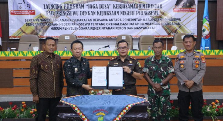 Pemerintah Daerah Kabupaten Pringsewu dan Kejaksaan Negeri Pringsewu resmi meluncurkan *Program Jaksa Garda Desa* (Jaga Desa) dan Penandatanganan MoU antara Pemerintah Daerah Kabupaten Pringsewu dengan Kejaksaan Negeri Pringsewu tentang Optimalisasi dalam Membangun Kesadaran Hukum Penyelenggara Pemerintahan Pekon dan Masyarakat melalui Program Jaksa Garda Desa (Jaga Desa).