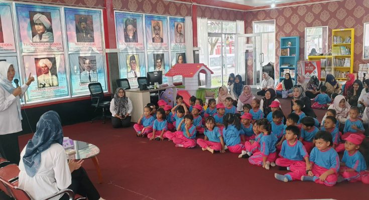 Kunjungan rombongan TK Negeri Pembina Kalianda diterima Pustakawan Ahli Madya, Dinas Perpustakaan dan Kearsipan Kabupaten Lampung Selatan, Drs. Saripudin, M.M.