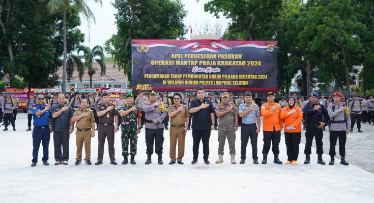 MNN.com, Kalianda – Polres Lampung Selatan menggelar Apel Pergeseran Pasukan dalam rangka pengamanan Tempat Pemungutan Suara (TPS) jelang H-2 pemungutan suara pada Pemilihan Kepala Daerah (Pilkada) Lampung Selatan 2024.