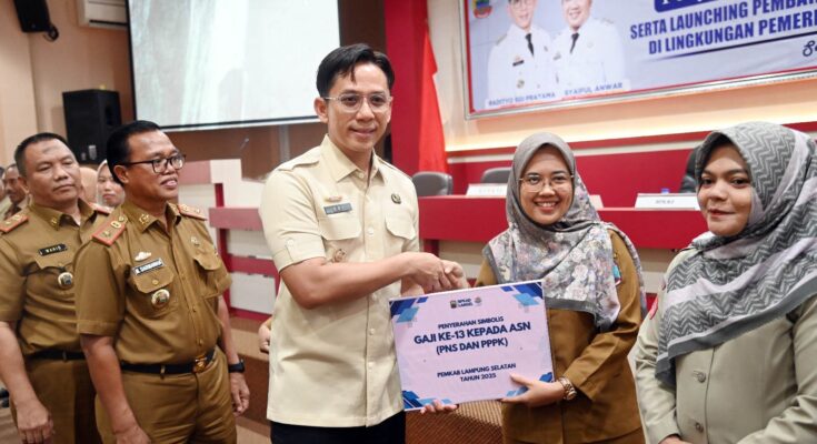 MNN.com, Kalianda – Dalam komitmennya meningkatkan kesejahteraan aparatur dan tenaga kerja non-ASN, Bupati Lampung Selatan, Radityo Egi Pratama (Egi) secara simbolis menyerahkan gaji dan TPP ke-13 kepada ASN serta meluncurkan kebijakan pembayaran gaji bagi Tenaga Harian Lepas Sukarela (THLS) setiap tanggal 1 tiap bulannya.
