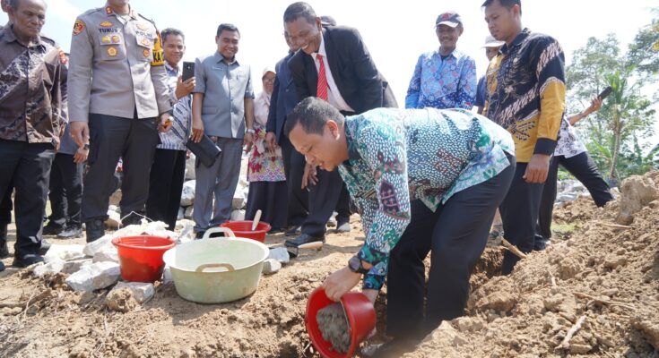 Bupati Pringsewu Riyanto Pamungkas melakukan peletakan batu pertama pembangunan Gereja Huria Kristen Batak Protestan (HKBP) Resor Pringsewu di Pekon Podosari, Kecamatan Pringsewu, Kabupaten Pringsewu, Kamis (7/8/2025). Pembangunan ini merupakan pengembangan fasilitas peribadatan bagi para jemaat yang selama ini dilaksanakan di Gereja HKBP Jalan Satria, Pringsewu Barat.