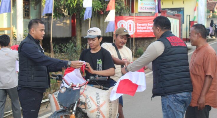 Menyambut HUT Kemerdekaan Republik Indonesia ke-80, Sat Reskrim Polres Pringsewu menggelar aksi pembagian dan pemasangan bendera merah putih di Pekon Selapan, Kecamatan Pardasuka, salah satu desa terjauh dari pusat Kota Pringsewu, Minggu (10/8/2025).