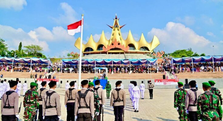 MNN.com, Bakauheni – Sejarah baru tercatat di Kabupaten Lampung Selatan. Untuk pertama kalinya, Pemerintah Kabupaten (Pemkab) Lampung Selatan menggelar upacara peringatan Hari Ulang Tahun (HUT) ke-80 Kemerdekaan Republik Indonesia di kawasan ikonik Menara Siger, Kecamatan Bakauheni, Minggu (17/8/2025).