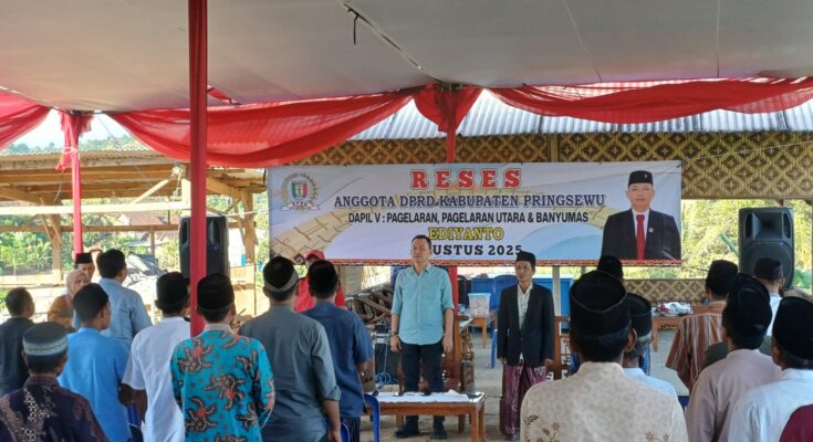 Anggota DPRD Kabupaten Pringsewu Ediyanto dari Dapil V Kecamatan Pagelaran, Pagelaran Utara dan Banyumas, menggelar acara reses ketiga selama dia menjabat anggota dewan, sebagai sarana penyerapan aspirasi dari masyarakat sekaligus silaturahmi dengan para tokoh agama, masyarakat dan pemuda.