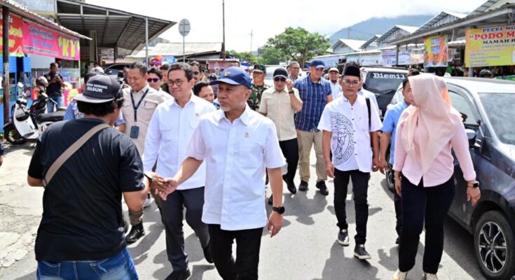 MNN.com, Kalianda – Menteri Koordinator (Menko) Bidang Pangan Republik Indonesia (RI), Dr. (H.C.) Zulkifli Hasan, S.E., M.M., bersama Menteri Perdagangan (Mendag) RI, Dr. Budi Santoso, M.Si., melakukan peninjauan langsung aktivitas perdagangan di Pasar Inpres Kalianda, Kabupaten Lampung Selatan, Sabtu (27/12/2025).