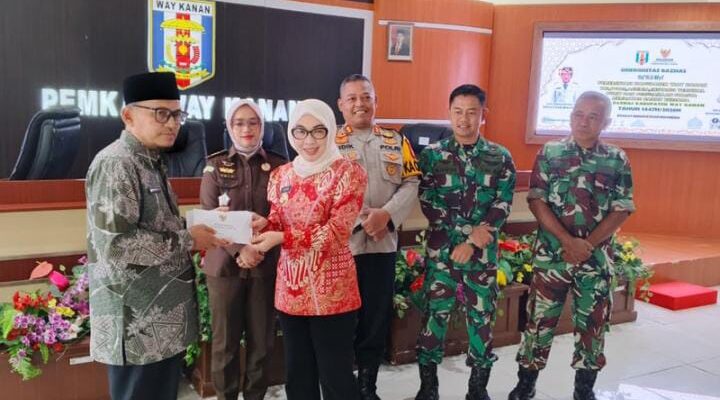 Bupati Way Kanan, Ayu Asalasiyah, membuka kegiatan pembayaran zakat fitrah, zakat maal, zakat profesi, infak, dan sedekah bersama Badan Amil Zakat Nasional (BAZNAS) Kabupaten Way Kanan. Acara berlangsung di Ruang Buway Pemuka Pengiran Tuha, Kamis (5/3/2026).