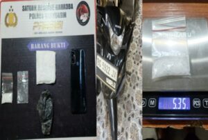 Dari tubuh terduga, petugas telah mendapati dan menyita barang bukti berupa satu paket narkotika jenis sabu dengan berat bruto 5,35 gram.