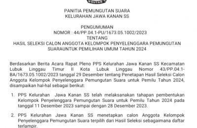 Pengumuman Anggota KPPS Kota Lubuklinggau Patut Dipertanyakan